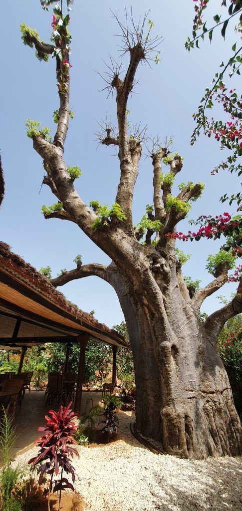 Un majestueux baobab domine le campement. A ses pieds, vous êtes au restaurant.