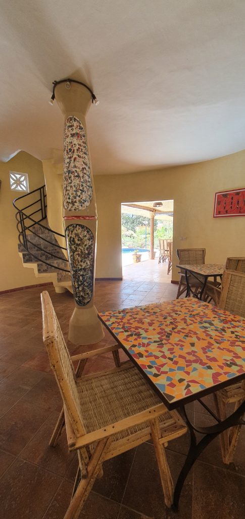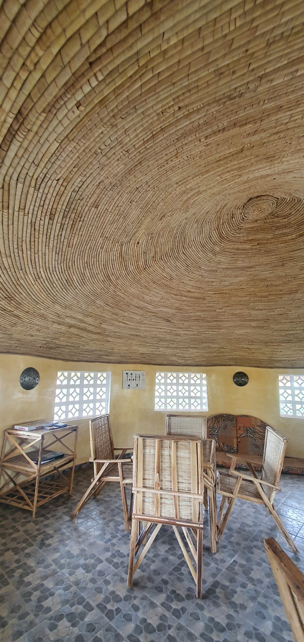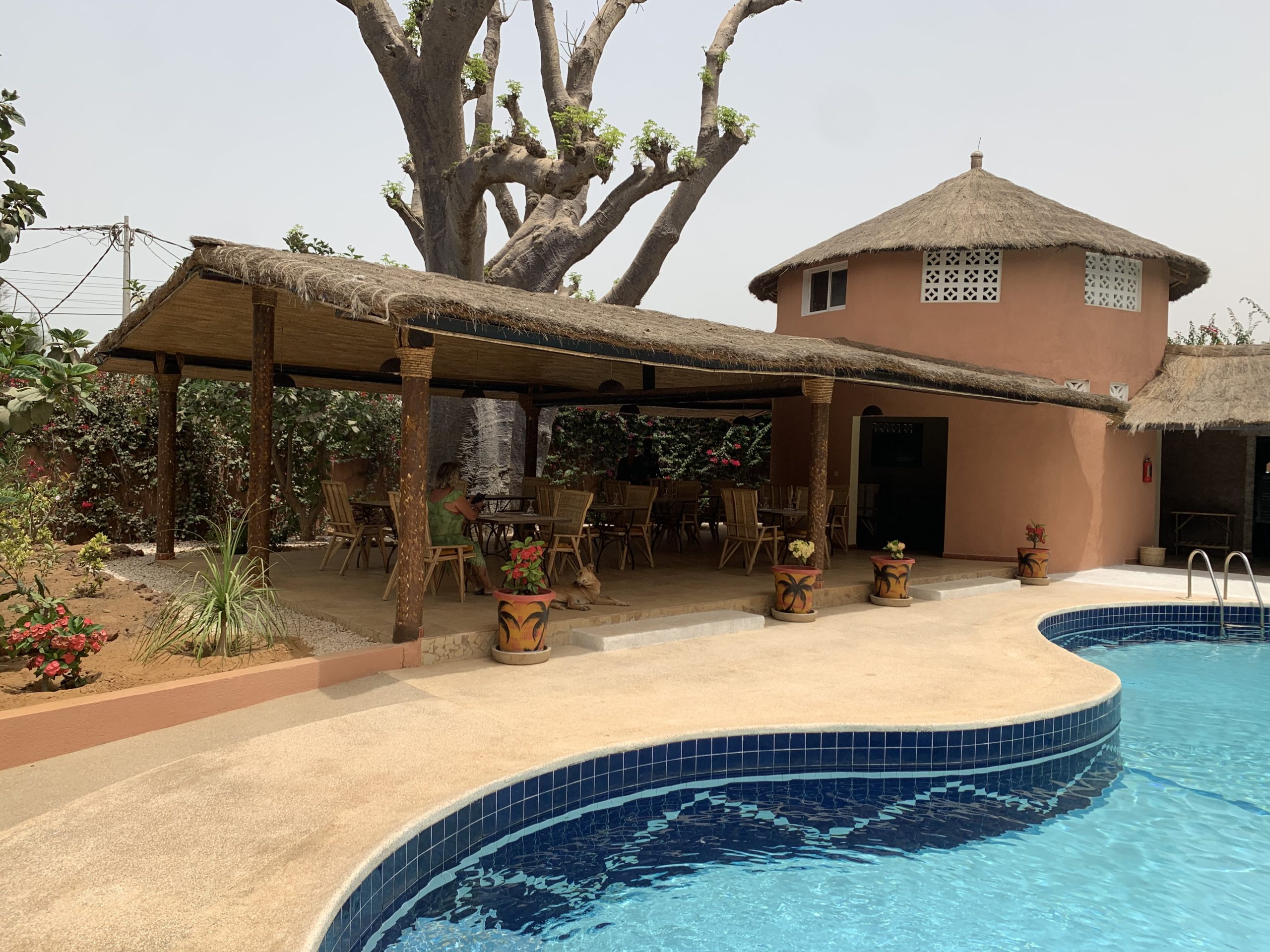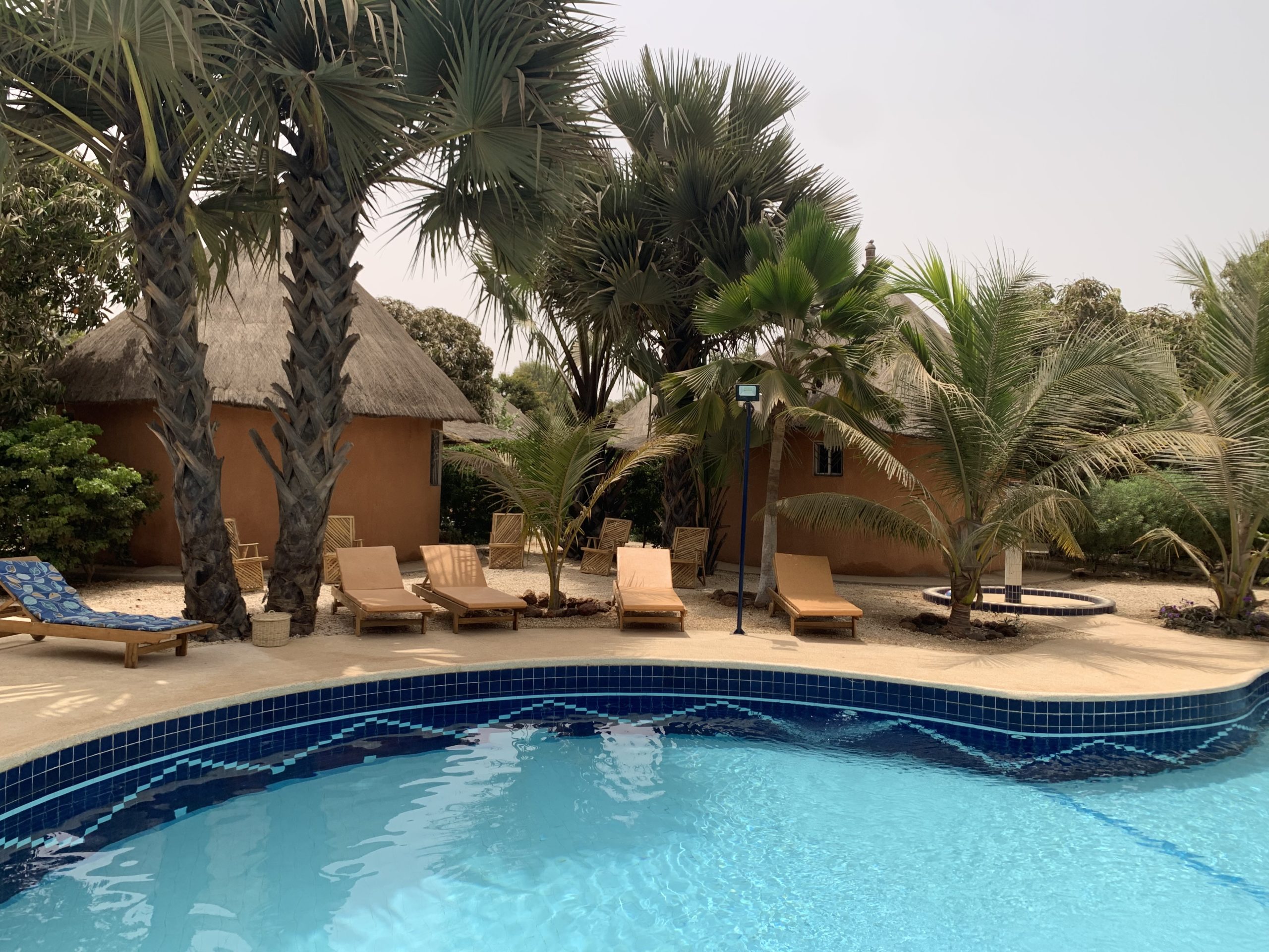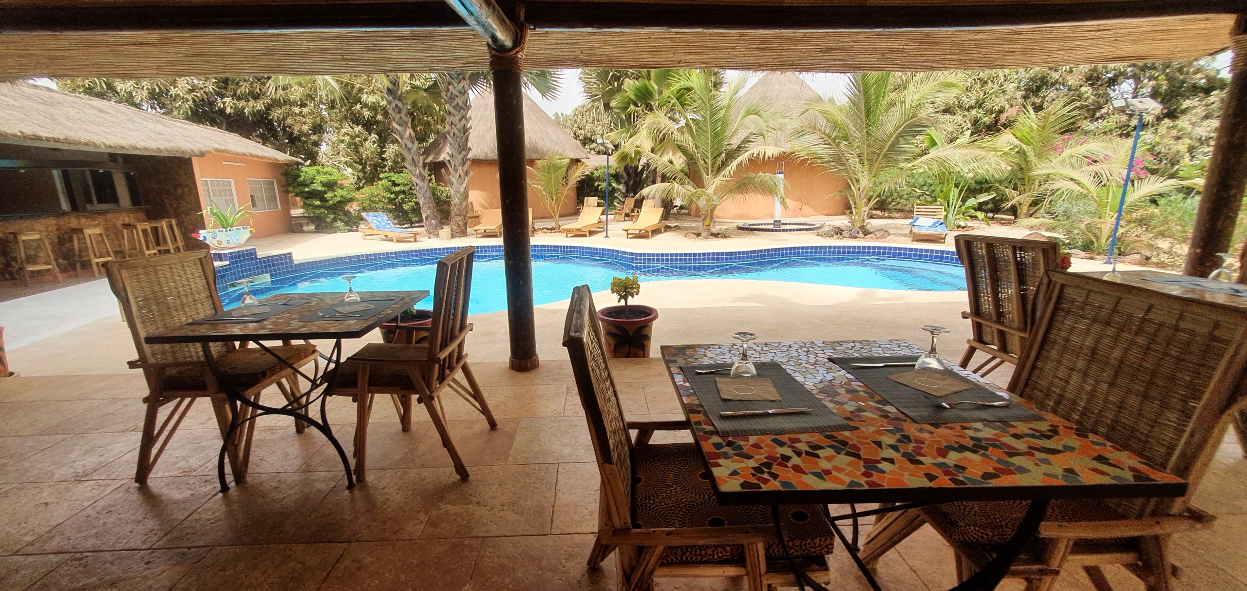 Pour rester en harmonie avec la nature, nous avons choisi pour vous un maximum de mobilier en rônier, travail exceptionnel de Léonie, artisane dans un village de rôniers. Ainsi les chaises du restaurant, les salons de la salle de repos, les fauteuils autour de la piscine ou du bassin à poissons, les salons privés des cases, les étagères et les lampes de chevet sont ses réalisations.