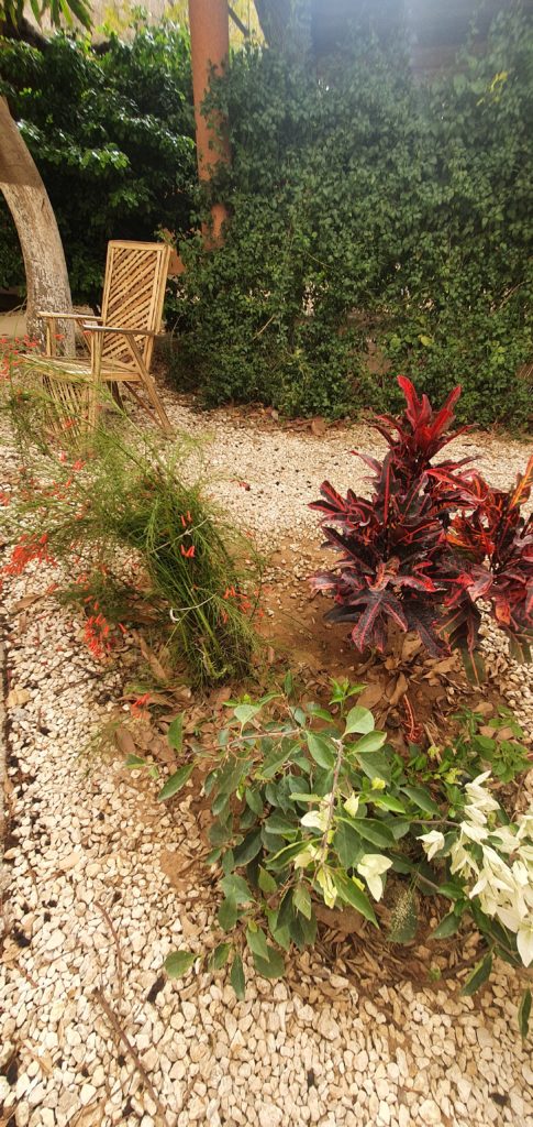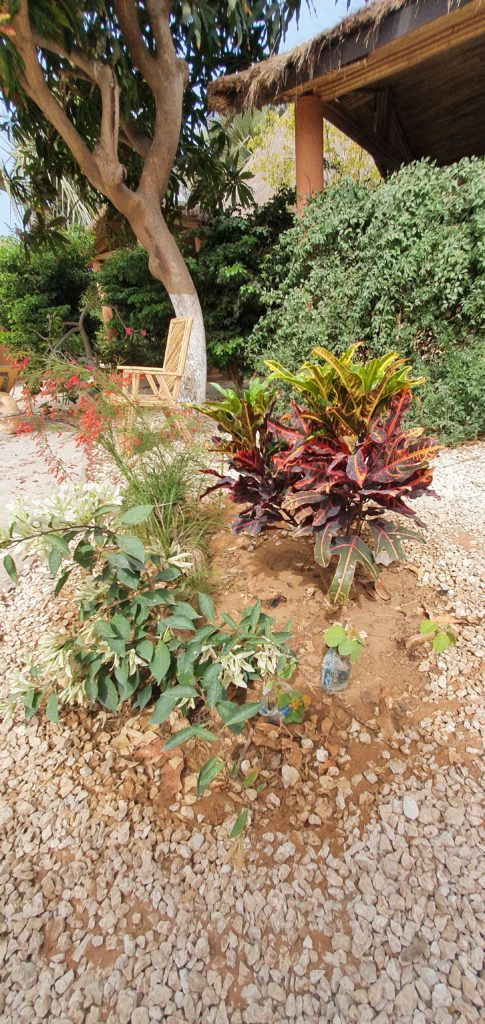 De multiples arbustes vous égaieront avec leurs fleurs et se partagent la place avec différents arbres fruitiers tout à travers le campement.