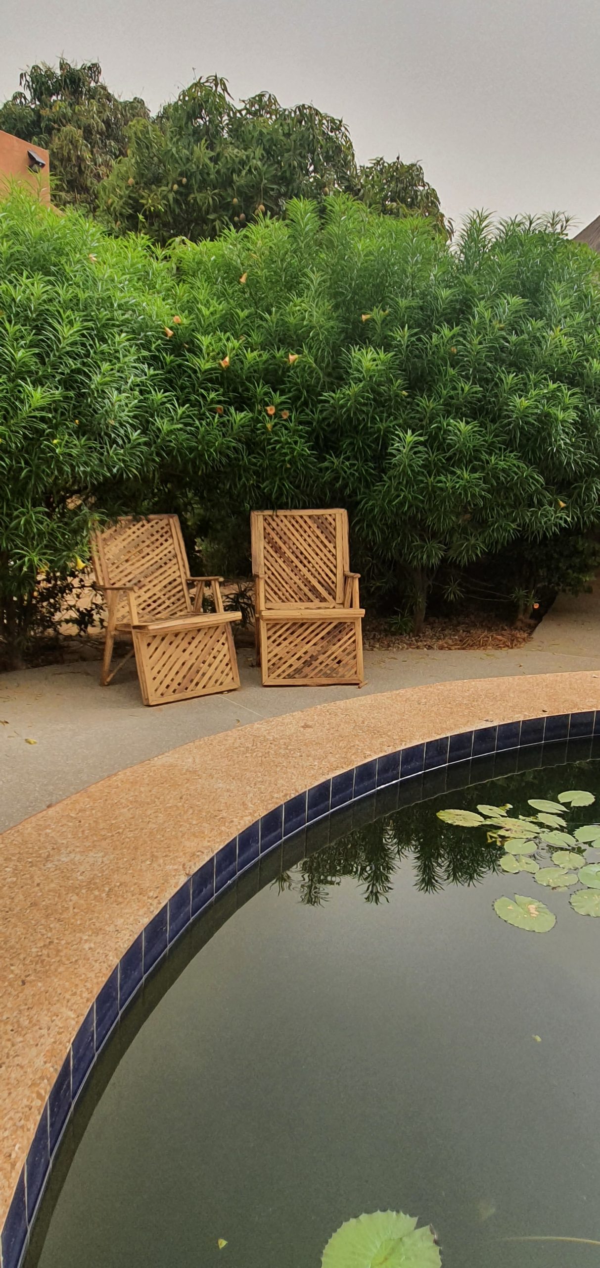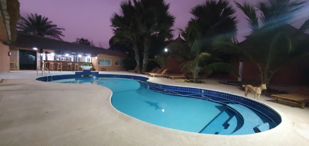 Cocotiers et rôniers ont trouvé leurs places de l’autre côté de la piscine pour vous offrir de l’ombre.