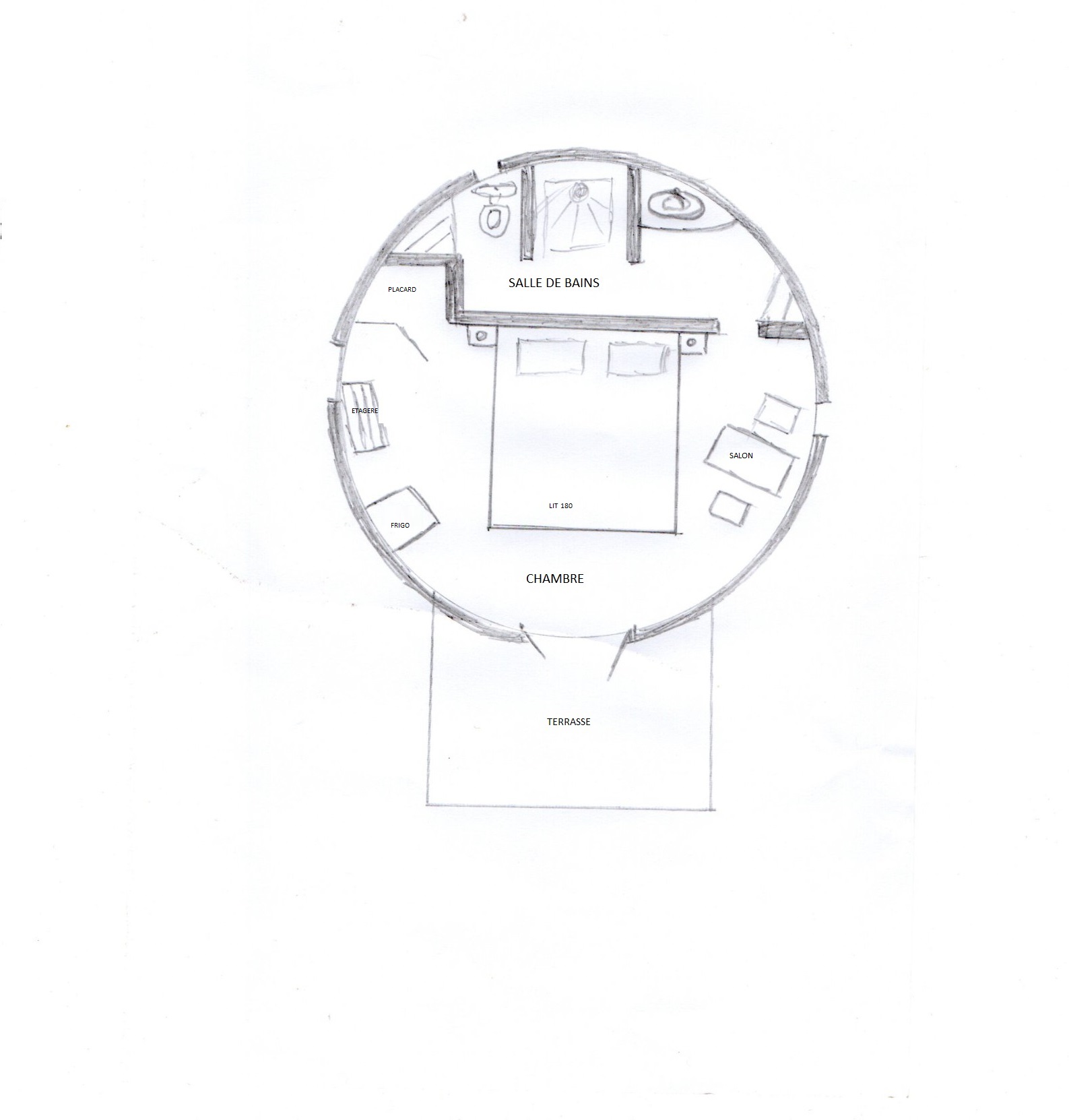Pour ceux qui choisissent de faire un plus long séjour parmi nous, on vous propose un demi studio conçu comme les cases, (sans possibilité de cuisiner). Vous y trouverez le même mobilier, avec une télévision en plus, l’abonnement étant à votre charge.